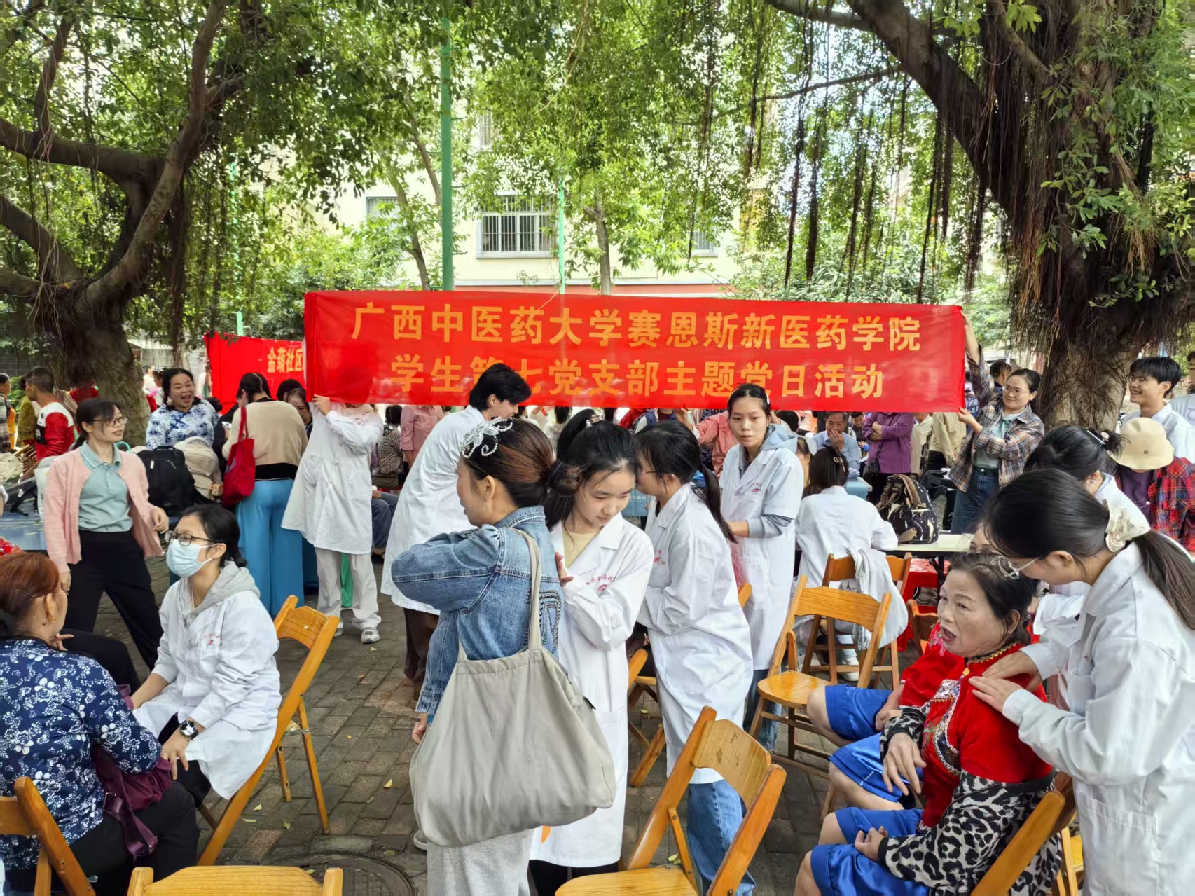 10月21日,在重阳节来临之际,学生第七党支部依托“一站式”学生社区平台,组织入党积极分子前往南宁市青秀区银葫社区,开展“重阳义诊护健康”主题党日活动,为社区老人提供中医推拿、慢性病咨询及康复指导等一系列医疗健康志愿服务。