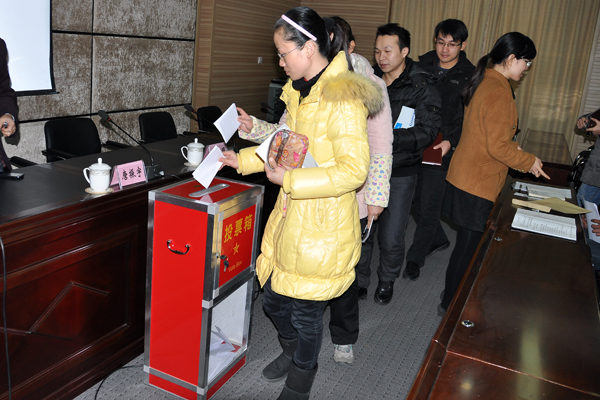 随后,与会人员以无记名投票方式,客观公正地从“德、能、勤、绩、廉”五个方面对述职领导进行了民主测评。