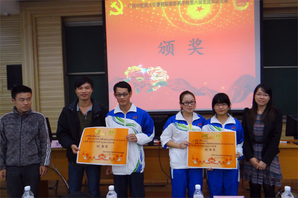 2013年10月18日晚,我院第六届党团知识竞赛决赛于多功能会议厅隆重举行。共有2012级中西医2班、2012级针推1班、2012级药学、2012级中医1班以及2012级中西医4班五支队伍进入了本次决赛。我院副院长叶绘晟,学工处学生管理科副主任王海婴,团委谭入铚老师、学生会指导老师黎桂曹、社团联合会指导老师蓝帜等老师出席本次比赛。