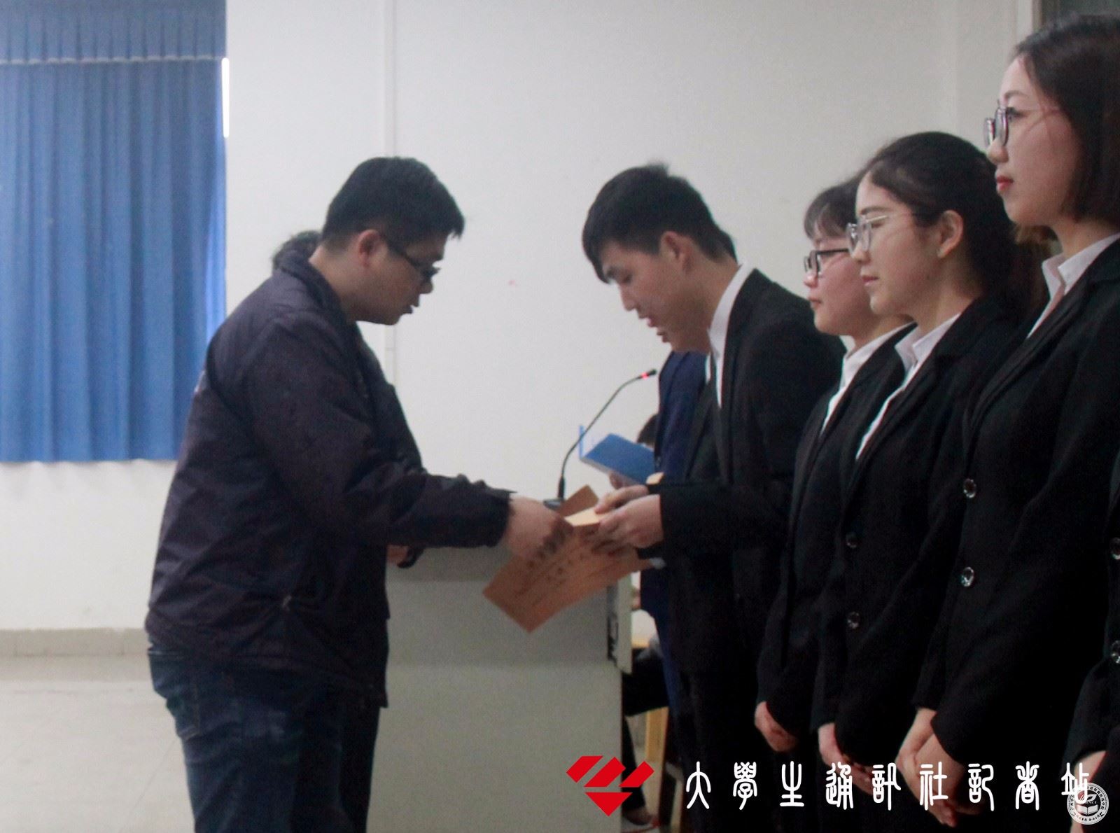 大会上,黄学政、梁志兰、李琳分别为获得2017-2018年度“先进个人”的陈良、廖婧、殷邵良等27名同学颁奖。随后,获奖代表刘少芳表示一分耕耘一分收获,赛院是一片充满爱的沃土,她一定会严于律己,修身规范。