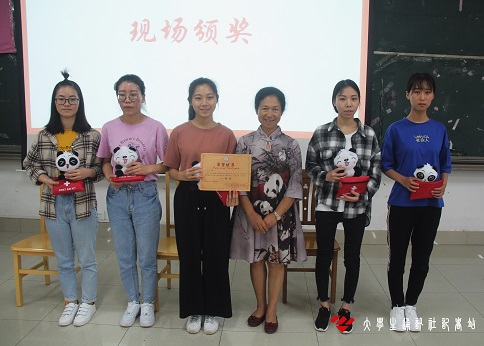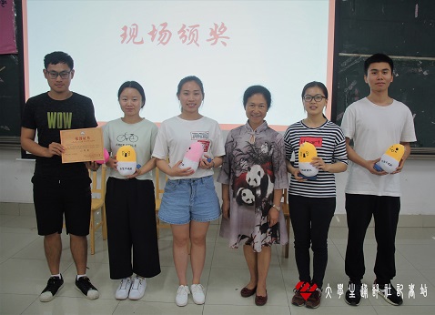 指导老师岑老师颁发获奖奖品