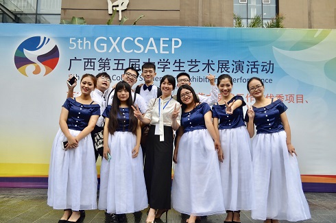 本次大赛围绕“理想与信念”这一主题,活动项目分为艺术表演类、大学生艺术实践工作坊、艺术作品类、高校艺术教育科研论文报告会四大类。在全区一百多所高校几千名参赛选手的激烈的角逐下,我院大学生艺术团代表队以及大学生通讯社广播站在历时一年的准备下,克服了种种障碍,获得了进入决赛的资格,最终在2017年8月底的现场展演决赛中获得优异成绩。其中大学生艺术团合唱团节目《月亮今晚要出嫁》《玩具兵进行曲》获得合唱甲组二等奖,空格键小合唱节目《amazing》获得小合唱甲组二等奖,器乐队节目《梦里水乡》《赛马》获得器乐演奏甲组三等奖,舞蹈队节目《秀色》获得舞蹈甲组三等奖,大学生通讯社广播站节目《以青春的名义宣誓》获得朗诵甲组三等奖。