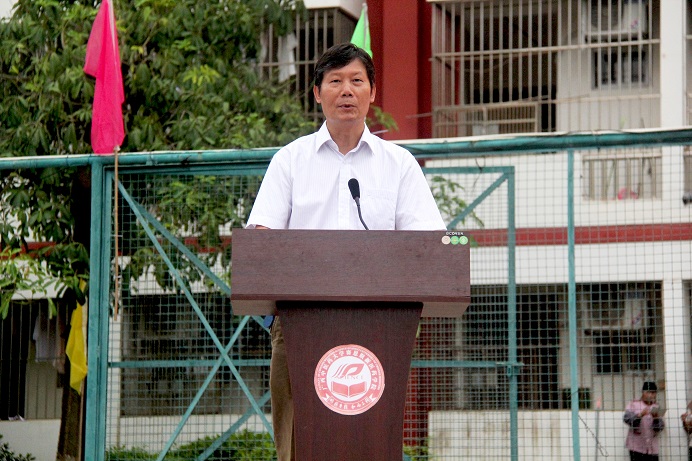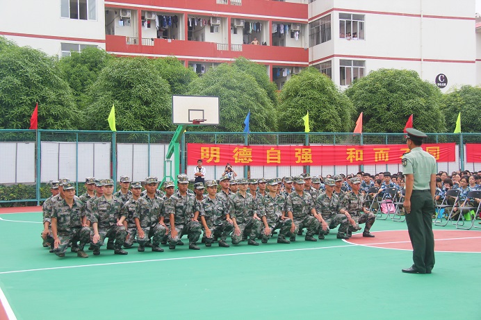 首先是冼锦华教授发言,他在发言中向本次参与军训的新生提出三点要求:一、端正态度,严格训练第二、尊重教官,听从指挥。第三、团结一致,互帮互助。第四、克服困难,磨砺意志。第五、确保安全,强化管理。相信10天的军训生活能让参训新生的意志更加顽强、体魄更加强健、爱国意识和国防意识显著提高,为保卫和建设强大的祖国、实现伟大复兴的中国梦贡献自己的力量。南宁市警备区民兵应急营副营长刘成华同志在军训讲话中说道:军训是同学们大学生活的前奏,也是同学们接触部队生活,了解国防知识的课堂,更是一个挑战自我、提升自我的重要过程。多年的实践证明,认真完成好学校交给大家的军训任务,不仅能增强同学们的体魄,提高国防意识,而且还有助于塑造大家坚韧不拔、迎难而上的坚强品格。