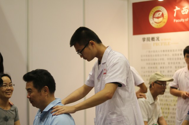 我院院长梁天坚教授亲临现场指导,学工处处长黄学政、招生就业处副处长张荣武以及老师代表和手法协会的同学们参与开展了广西2017年普通高校招生咨询会。