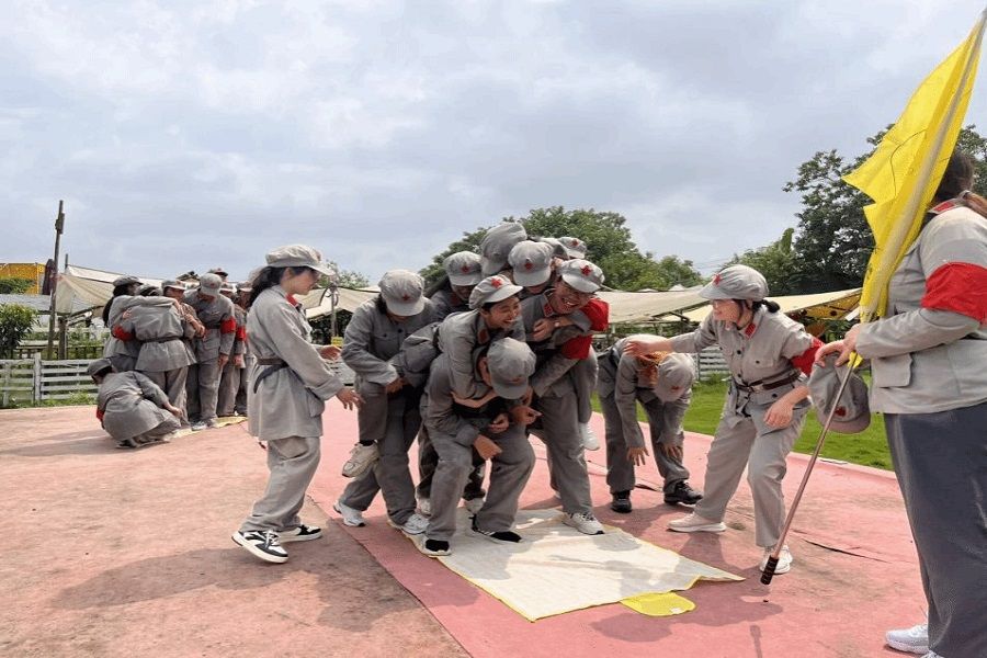 上午,研学队伍来到青瓦房古村落革命传统教育基地,在这里同学们换上红军帽、红军服,拉开了研学之旅序幕。在连队建设、红色主题团队命名与展示、巧渡金沙江、重走长征路和共绘蓝图等红色素质拓展中,同学们勇当排头兵和生力军,展现了自信自强、刚健有为、团结协作、凝心聚力的精神风貌,每一个同学都全身心投入到活动中,切身地感受着伟大历史事迹,并从中汲取力量、锻造品格,坚定新时代青年挺膺担当的理想信念。