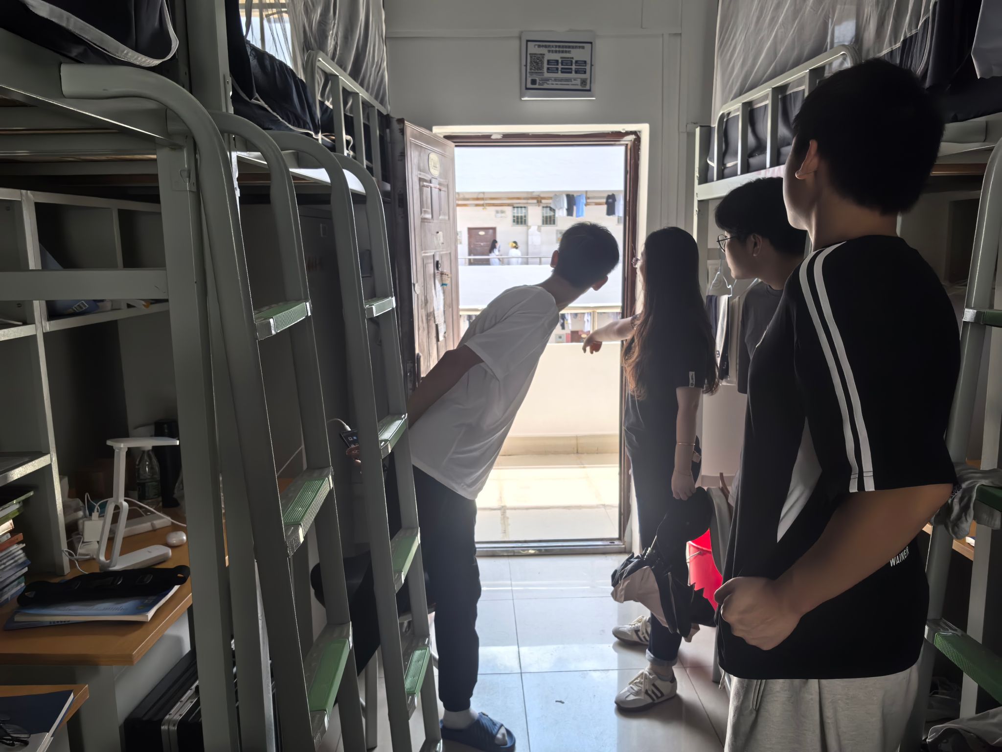 当天下午,学工处还组织全体辅导员及学生自管会,联合开展了学生宿舍安全卫生大检查,重点排查宿舍卫生、消防安全、用电安全,并着重对阳台、走廊放置的花盆、晾衣架、杂物等是否存在高空坠物风险进行了检查与整改,确保台风来临前消除安全隐患。