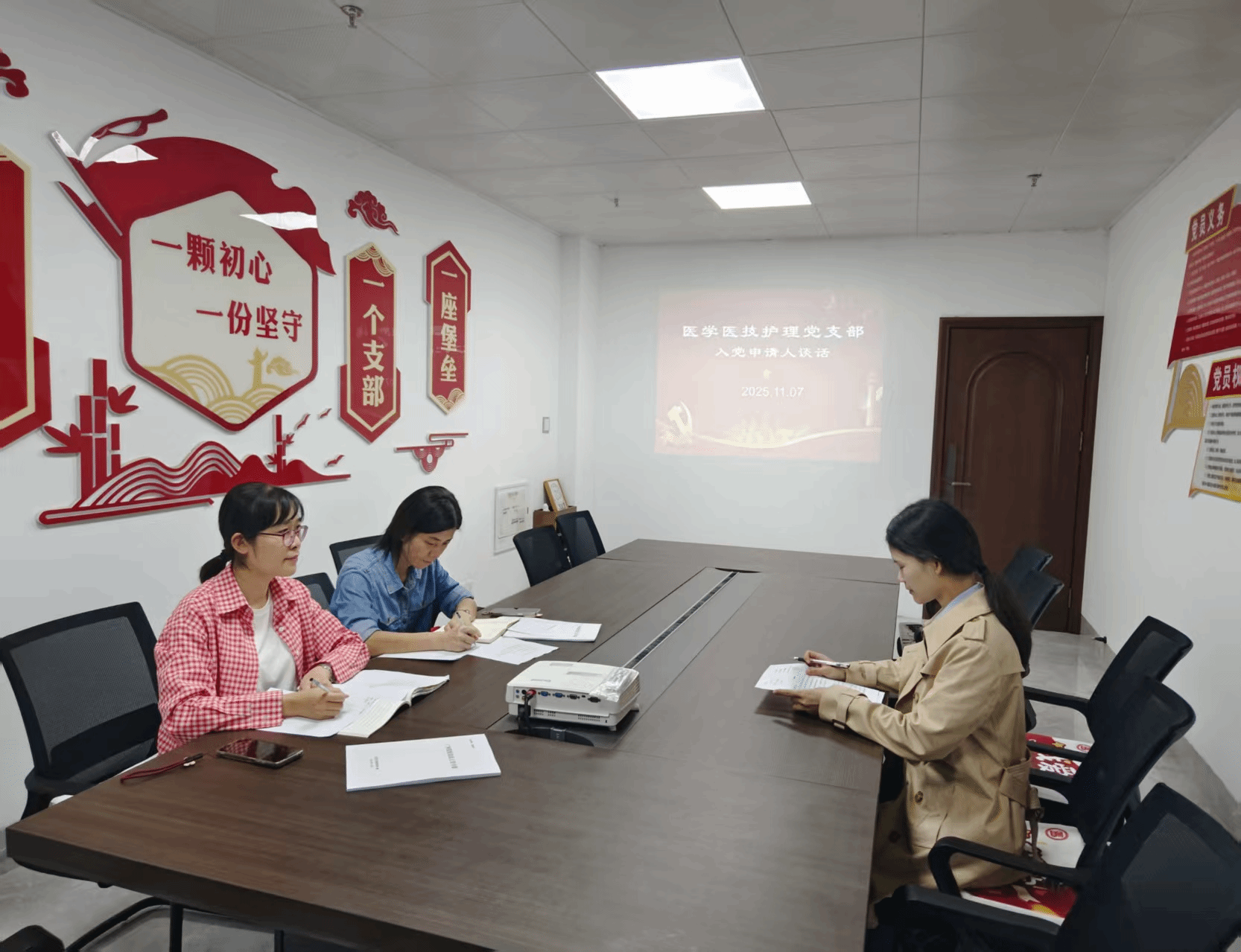 为精准掌握入党申请人的思想动态,筑牢党员发展工作基础,严把党员发展“入口关”,11月7日下午,医学医技护理党支部开展入党申请人谈心谈话活动。
