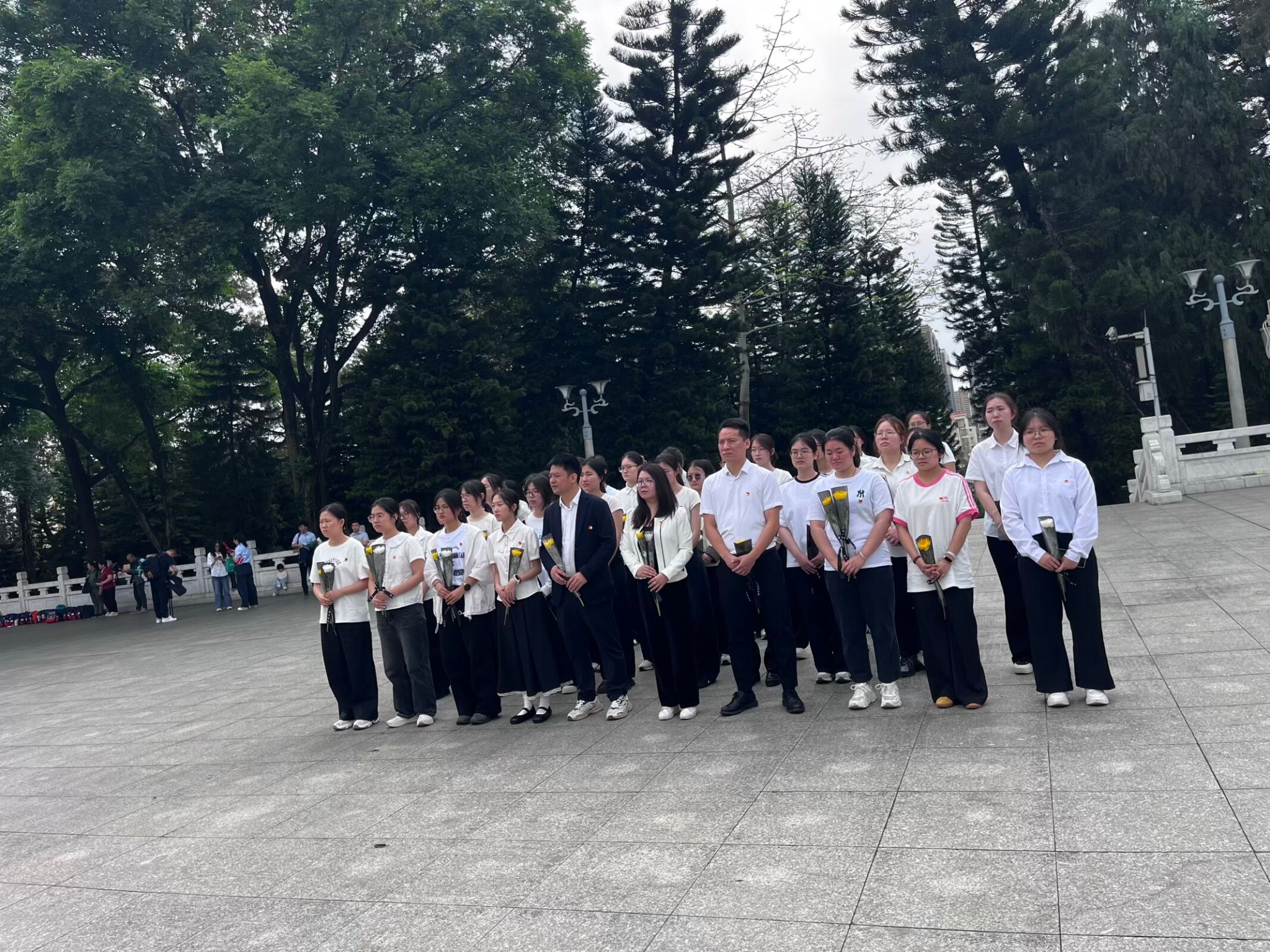 4月1日上午,我院学生第十党支部、第二十四党支部赴南宁市人民公园联合开展“缅怀革命先烈,筑牢党员初心”主题党日活动。本次活动由学生第三党总支书记林嘉明带队,学生第十党支部书记李东晓、第二十四党支部书记陈俊共同组织,39名学生党员代表参加。