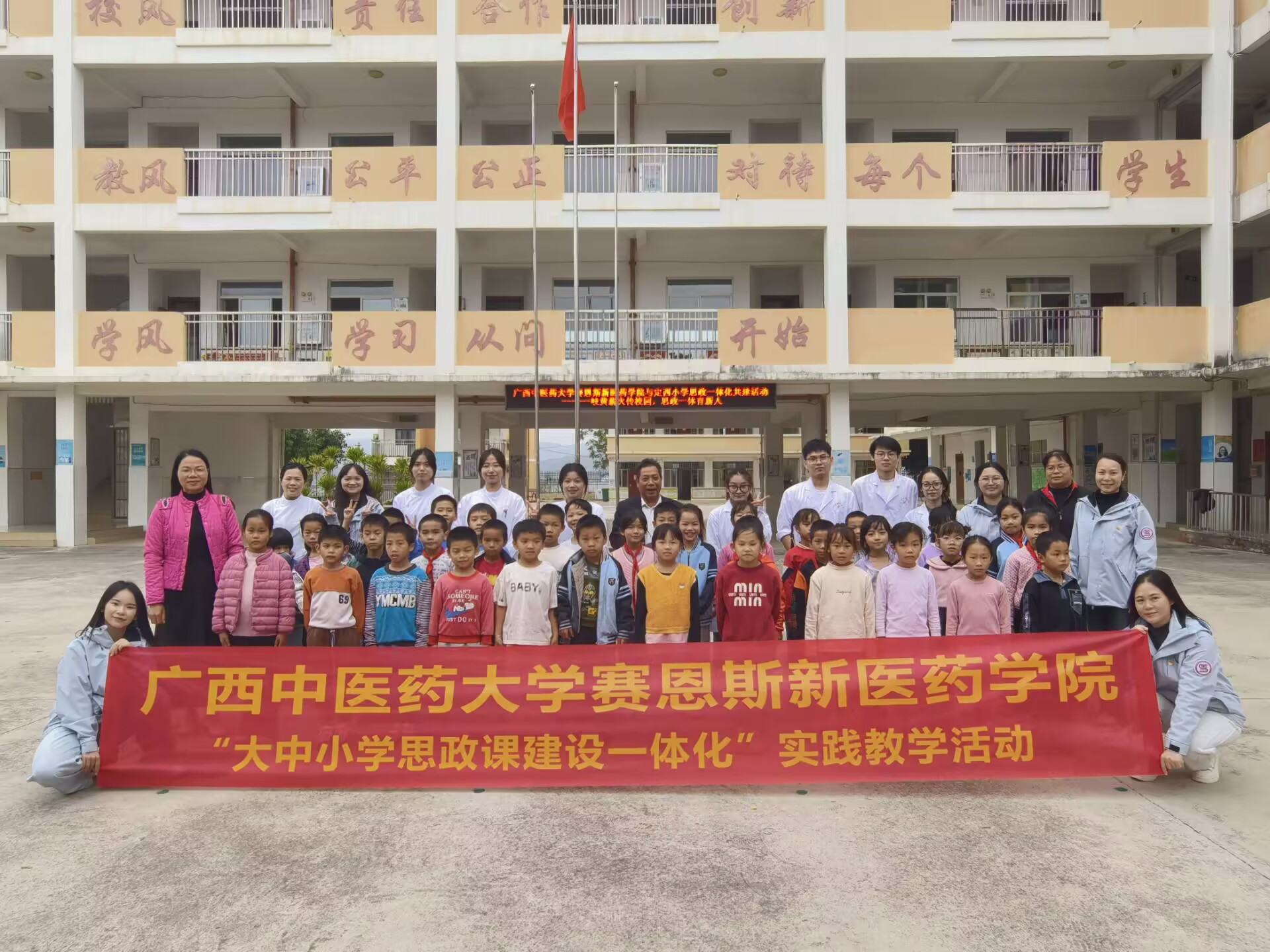 为落实并持续推进大思政课和大中小学思政课一体化建设工作,12月5日下午,马克思主义学院联动南宁市青秀区定西村委会及定西小学开展“思政铸魂育新苗 岐黄仁术惠民生”共建活动。活动由马克思主义学院、药学系、教学实验实训中心、学生工作处教师代表和手法协会、护理协会学生共同参加。活动由马克思主义学院第二党支部书记廖芬芳带队。下午3时,师生在定西小学校门口搭建起临时诊疗区,我在提供常规血压测量、艾灸体验、健康咨...