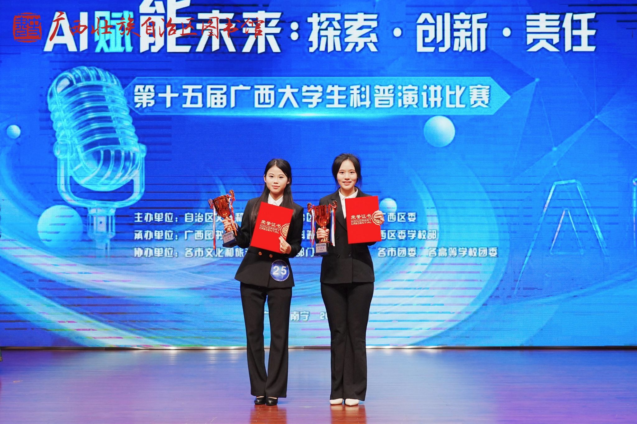 近日,由自治区文化和旅游厅、自治区科协、共青团广西区委联合主办的“AI赋能未来:探索·创新·责任”第十五届广西大学生科普演讲比赛获奖名单正式公布,我院学子斩获市级与自治区级多项荣誉。其中,由彭婷、郑文琦老师指导的李佳怡同学荣获南宁市一等奖,彭萱苒同学荣获南宁市二等奖;两位同学成功晋级区赛,均荣获自治区三等奖。此次比赛以贯彻落实习近平总书记关于科技创新和科普工作的重要论述精神为核心,旨在营造爱科学、...