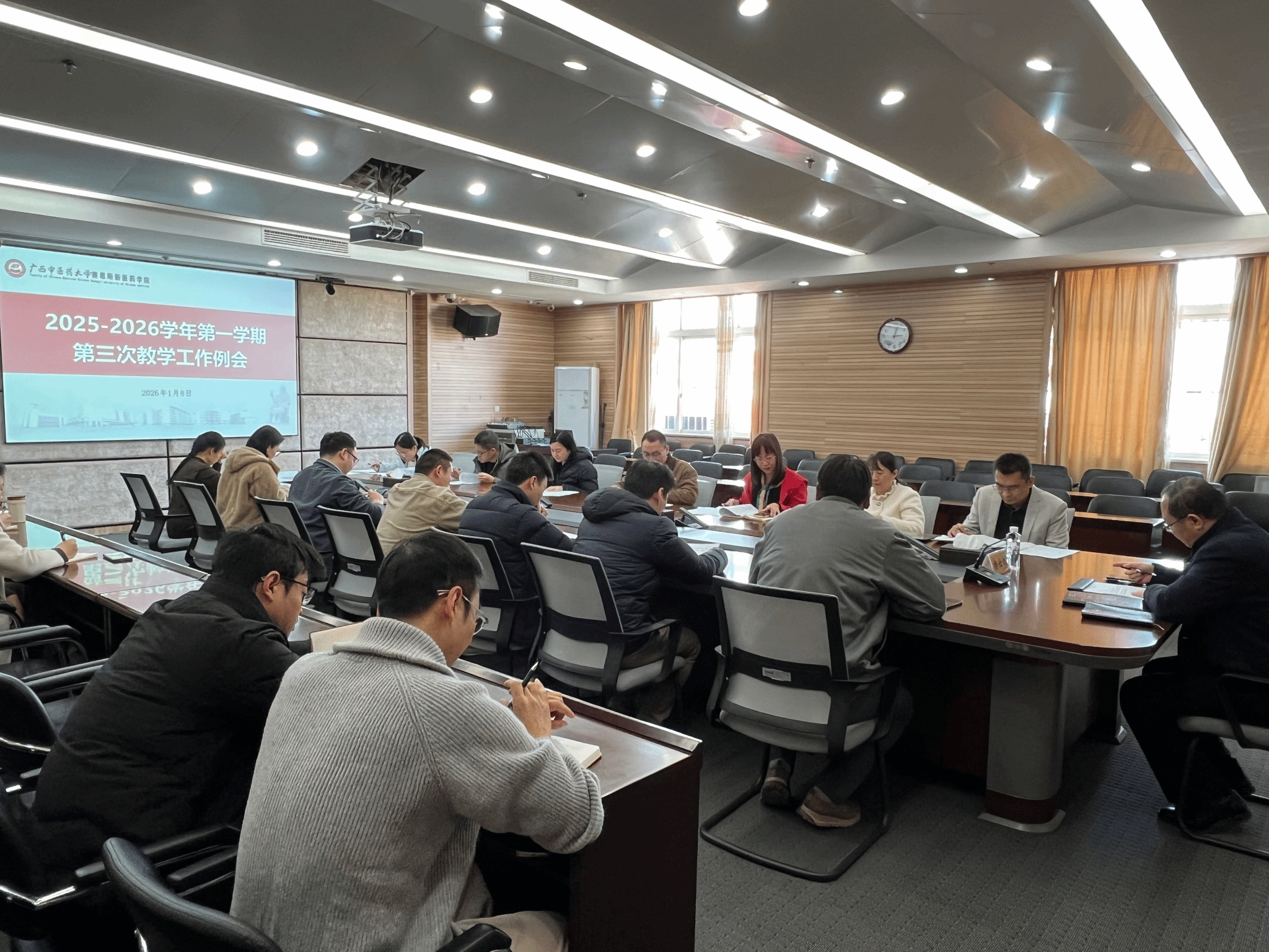 1月8日下午,我院在教学实验楼第二会议室组织召开2025-2026学年第一学期第三次教学工作例会。副院长杨仕权出席会议并讲话,教务处、教育教学质量监控与评价中心、信息技术中心部门中层领导、各院系负责人,科级干部及秘书参加会议。会议由教务处处长汪磊主持。会议通报了上一阶段工作成效,并就下一阶段重点任务作出部署。杨仕权在听取汇报后,对教学管理部门及各院系上一阶段的工作成果给予充分肯定。他指出,本学期教学工作虽...