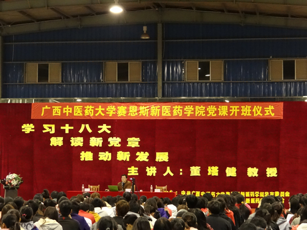 2012年12月5日晚,我院举行第11期入党积极分子培训开班仪式班,广西中医药大学党委副书记董塔健莅临并以《学习十八大新党章体会》为题,给培训班学员授课,宣讲党的十八大精神,解读修正后的《中国共产党章程》。&nb...